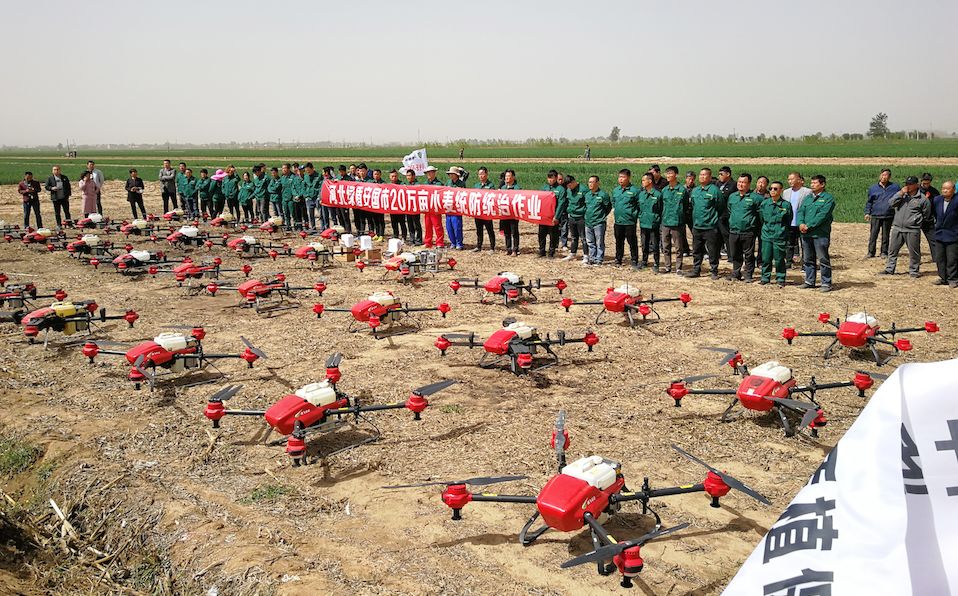 今年 4 月,我们在安徽、河南、江苏、陕西、河北等地打响了统防统治作战,1 个月内,便完成了5879441.30 亩农田的防治作业,相当于极飞在 2017 年近 70% 的作业量;