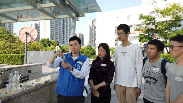 盛建还和青少年志愿者们一起读取了检测数值,用试剂盒现场检测秦淮河水的氨氮数值约为1.0mg/L,达到了地表水IV类水质,符合景观水的标准;用TDS检测笔检测河水、自来水、净化水,比较出不同水样的水质差异。