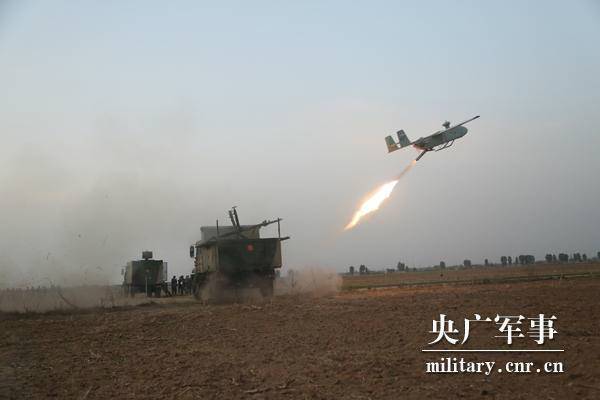 “5、4、3、2、1,点火!”随着指挥员的一声令下,助推火箭喷射出耀眼的火龙,无人机像一只绿色雄鹰腾空而起、直上云霄。