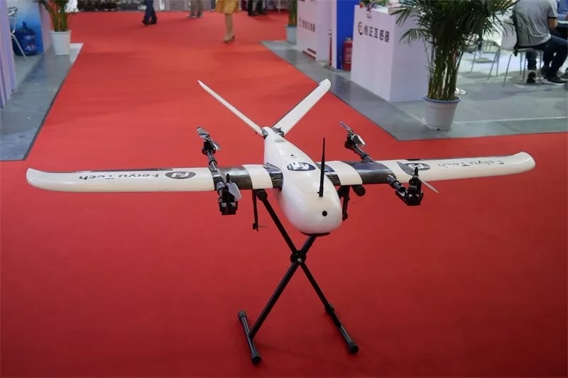 另一款新品名为VT01,是一款倾转旋翼无人机,该机拥有固定翼以及四个旋翼,极大地减少了无人机对起降场地的要求。同时,该机前端的两个螺旋桨采用的是倾转旋翼的设计结构,当飞机垂直起飞和着陆时,旋翼轴垂直于地面,呈横列式直升机飞行状态,并可在空中悬停、前后飞行和侧飞,这样的设计极大地增加了无人机多样性。