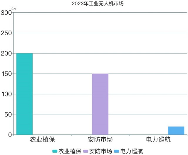 前瞻产业研究院发布的《2018-2023年中国工业无人机行业发展前景预测与投资战略规划分析报告》预测,到2023年,工业无人机市场规模达450亿——农林植保约为200亿、安防市场约为150亿、电力巡检约为50亿。