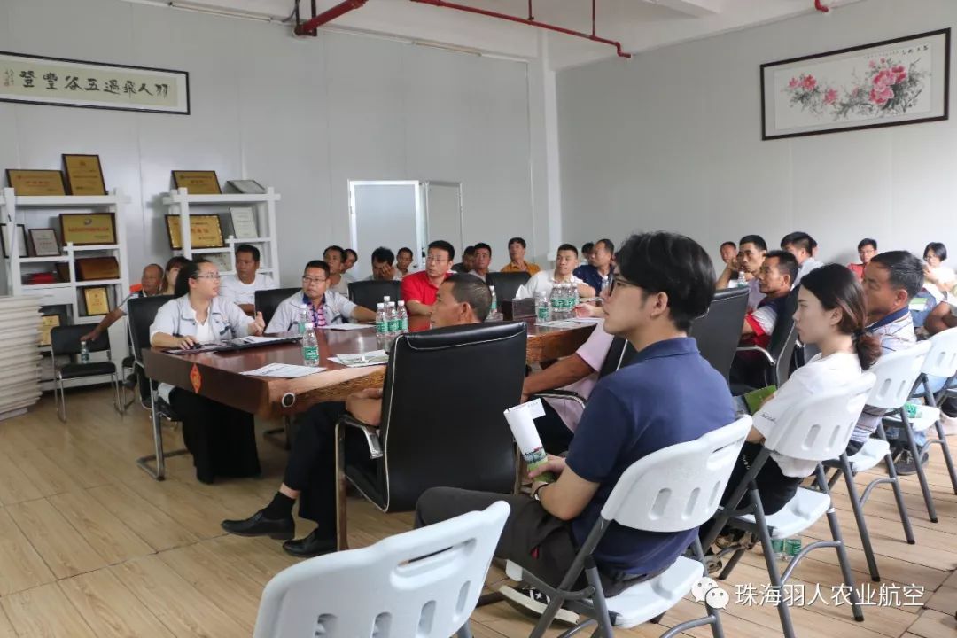 参观考察期间,培训班一众成员在珠海羽人公司会议室进行了座谈会,听取了农用无人机在农业领域中应用现状与前景。会后还前往珠海羽人无人机测试外场观看谷上飞系列新款农用无人机演示。