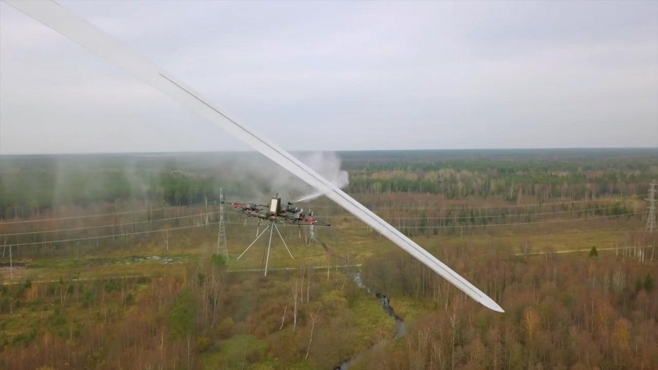 这是一款专业的擦玻璃无人机,个头比普通的无人机大很多,整整有55公斤重,多达38个螺旋桨。我们都知道,大部分普通无人机都有一个短板,电池飞不了几分钟就没电了。但这种擦玻璃无人机就没有这个顾虑了,因为人家是擦玻璃专用的,所以供电系统直接由地面上的线缆提供。