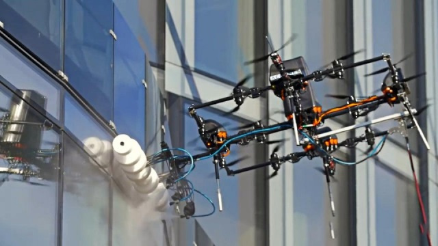 假如这种无人机开始大规模量产的话,高楼玻璃清洁工人的工作就轻松多了,只需要操纵无人机就行。