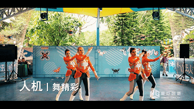 舞者帅气转身,空中漫步的无人机和台上劲舞的Dancers 仿佛被施与了魔法,宛如一体,默契配合演出了令人震撼的人机共舞!