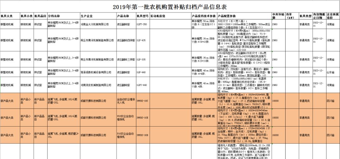 根据山东省《2018-2020年农业机械购置补贴实施指导意见》(以下简称《意见》),山东连续三年将植保无人机作为新产品品目纳入农机补贴范围。5月22日,山东省2019年第一批农机购置补贴归档产品信息已进行网上公示,天麒科技三款植保无人机产品:天麒V02、天麒V03-10L以及天麒V03-16L均进入此次补贴名录,补贴金额如下: