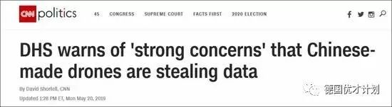 警告并没有点名哪家公司,但CNN提到,中国大疆无人机,已经占领了美国和加拿大80%的无人机市场!
