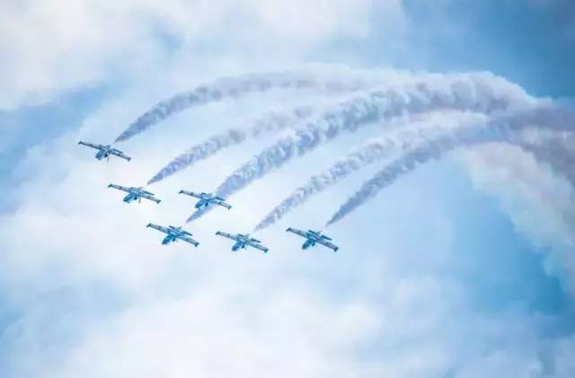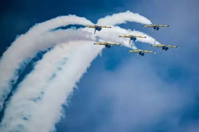 国际顶尖喷气式多机特技表演队凌空展翅、划破长空