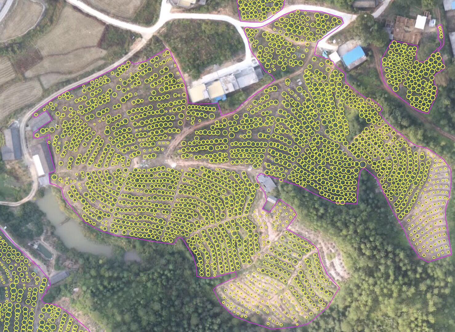过去,果园面积、果树棵数的数据收集,需要农户统计后上报给地方农林业管理者,而我国多数果园栽种于山地、丘陵之上,人工统计不仅辛苦劳累、效率低下,准确率也难以保证。如今,农户与植保队通过利用极侠多功能无人机搭载测绘相机,对果园进行拍摄后,可准确计算、统计果园面积,且能精准定位每一片果园的位置信息。极飞 XAI 基于极侠所拍摄的高精度图像,利用图像识别技术自动检测果树位置,进行精准定位,目前查准率与查全率已高达 98.60% 、98.04% 。人工数果树并标注出来,数一棵至少需要 1 秒。而强大的 AI,1 秒钟可以同步识别统计 10 张图片里成千上万棵果树。
