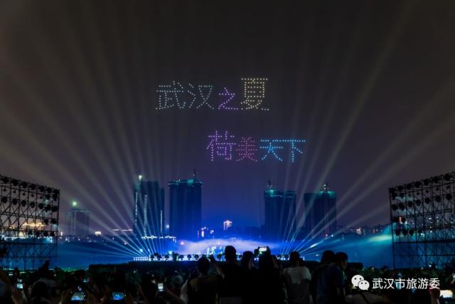 无人机组成的巨型荷花在天幕缓缓盛开,“武汉之夏,荷美天下”亮起,2019武汉荷花节正式启幕!