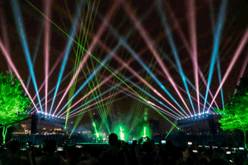 大桥飞架南北,高铁穿梭城市,夏荷朵朵绽放,激光与水幕投影,带来荷风扑面,气势恢宏。