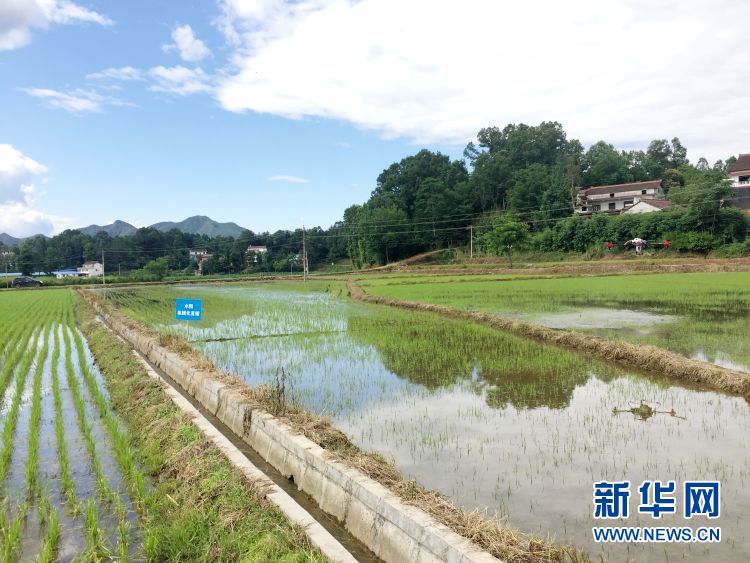 6月5日,一款极飞P30无人机正从一处“水稻机械化直播”试验田上空飞过,演示飞防作业。 何双 摄