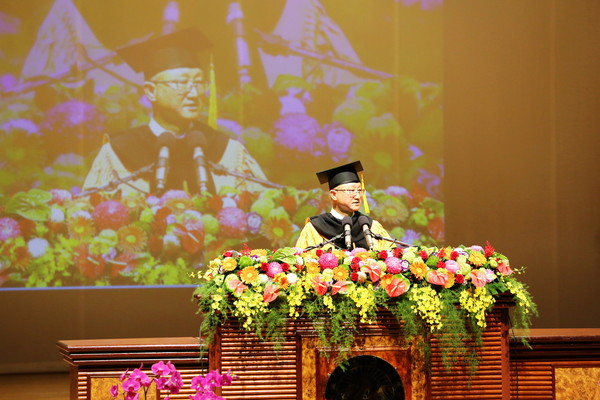 嘉義大學畢業典禮搭配樂旗隊、管樂社及吉他社等音樂性社團演奏樂聲,引領畢業生邁向典禮會場。校長艾群致詞時除恭喜畢業生順利完成學業,也勉勵同學脫離舒適圈,勇於面對挑戰,安逸的生活只會消減同學成長的動能,並強調自我學習的重要;在生活上真心誠懇待人,積極用心面對工作,希望同學了解助人為快樂之本的真諦與生命存在的價值,期許嘉大的畢業生都有這樣的氣質和涵養,在未來的職涯發展更有競爭力。