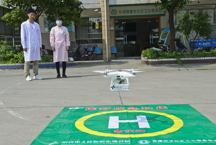 6月15日下午,绍兴市人民医院东浦分院举行了一场无人机参与的急救演练。