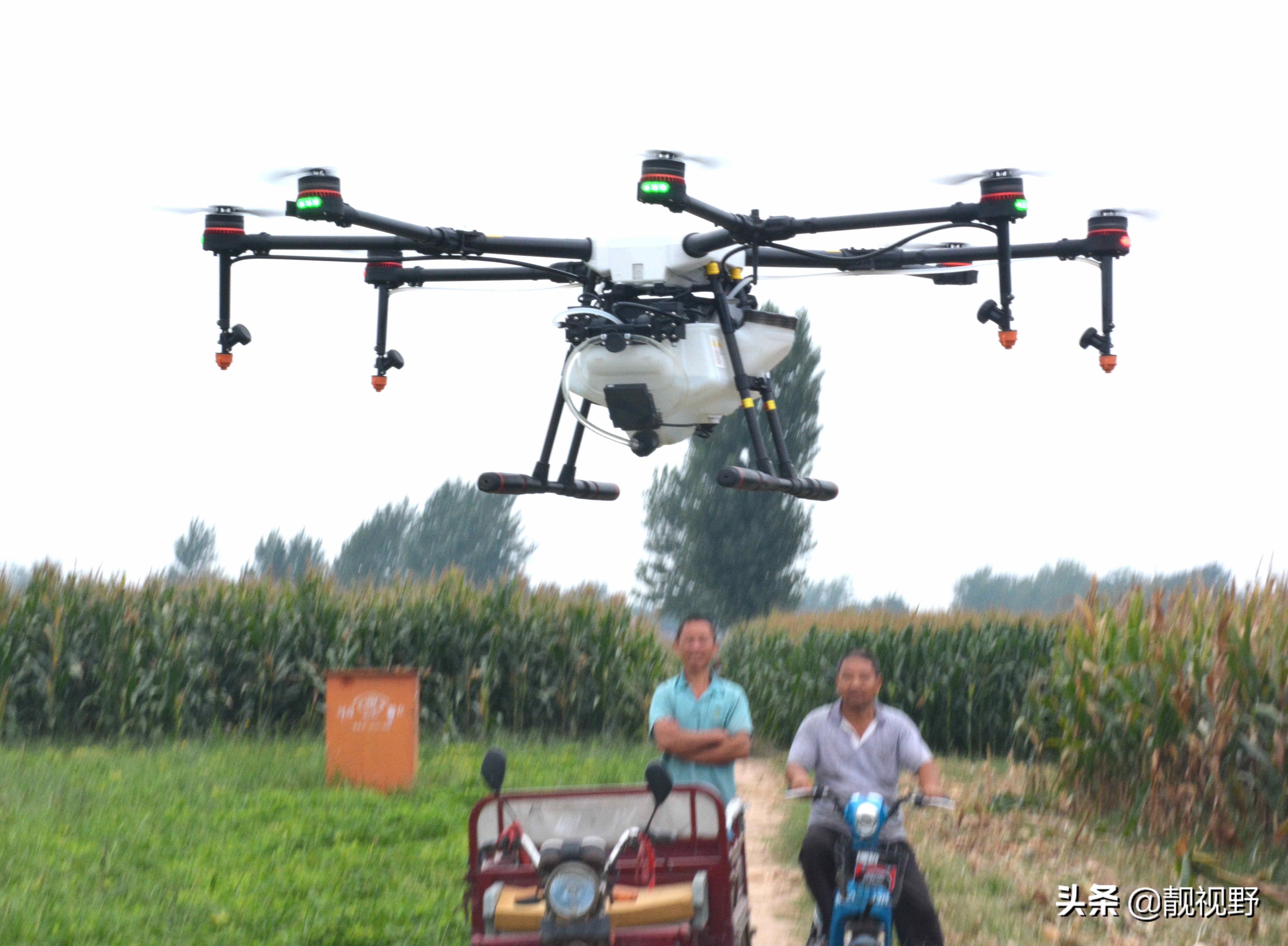 现在不仅有了自走式打药机,还有了打药无人机,它机体型娇小而功能强大,可负载8-10公斤农药,在低空喷洒农药,每分钟可完成一亩地的作业。喷洒效率是传统人工的30倍。