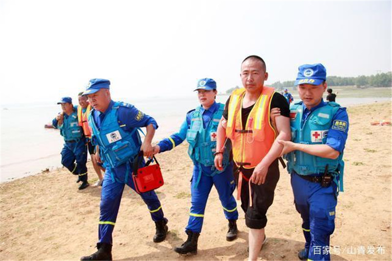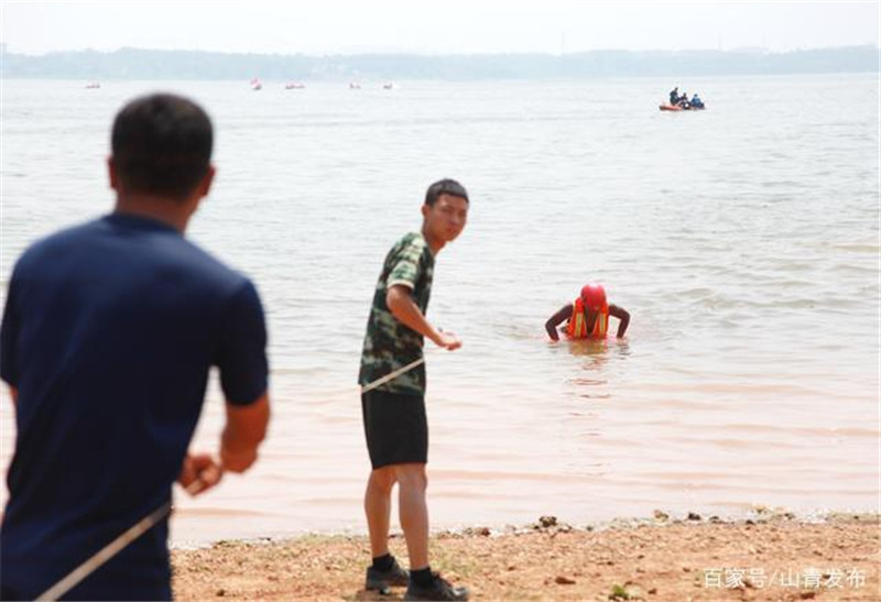 其间,三名游客和假人掉入河中,假人溺水沉入河底,同伴呼喊求救。面对意外情况,蓝天救援队出动2艘冲锋舟,一艘携带声纳装置,一艘运送3名潜水员进行深潜救援,利用声纳探测溺水人员位置。经过潜水员在沉入地点进行垂直搜救,打捞出来人员驶向岸边,医疗分队立即接应,将假人从担架抬出,在岸边进行心肺复苏。