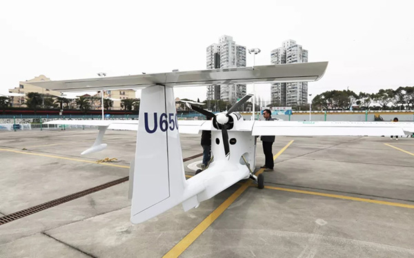 今年5月29日,我国一架喷涂中国邮政LOGO的中大型水陆两栖无人机,以135km/h的速度,历史52分钟横跨了110公里的海峡,满载着邮件成功从上海金山飞到了浙江舟山。