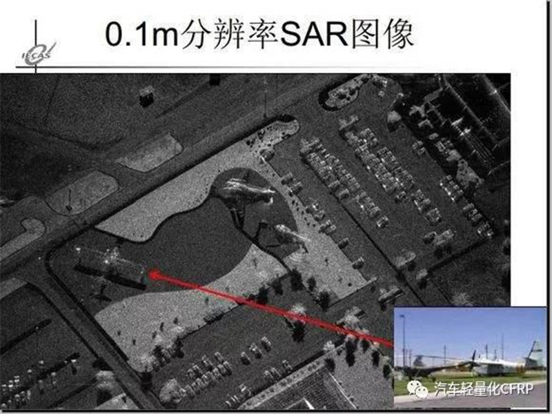 为了产生图像,无线电波产生的连续脉冲雷达被传输到目标场景进行持续射,每个脉冲产生的回波会被收并记录。脉冲被传输而产生的回波会使用单个波束的形式被天线收,其波长为几米到几毫米。当安装在飞机或航天器上的这种雷达设备移动时,相对于目标而言,天线位置会随时间变化。如果对连续记录的雷达回波进行信号处理,并记录组合多个天线的不同位置。这个过程就会形成合成孔径。(上图为分辨率为0.1m分辨率的“合成孔径”雷达遥感图片)
