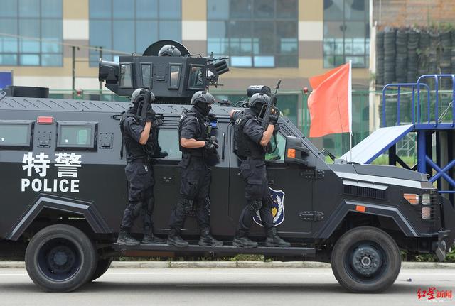 ↑演练现场,特巡警乘坐反恐装备车