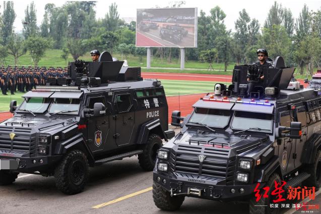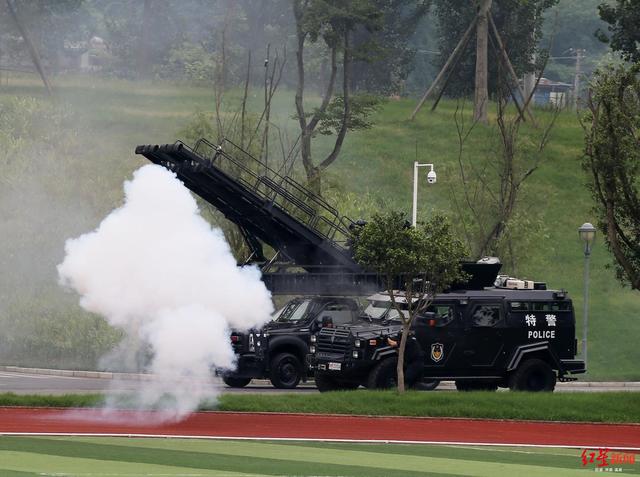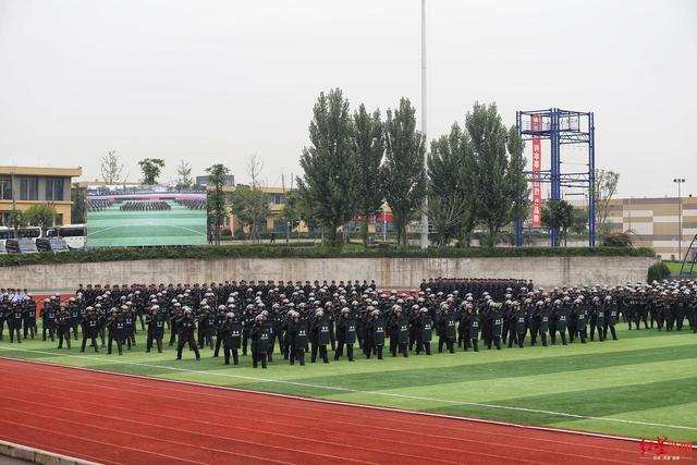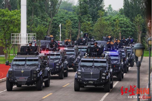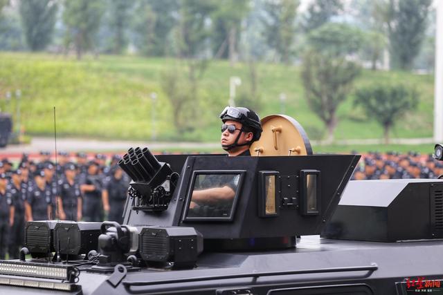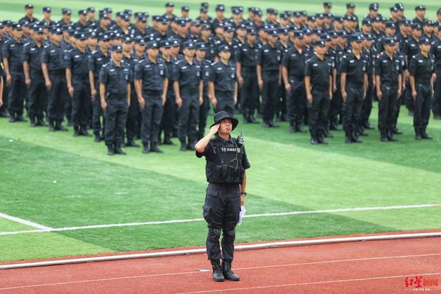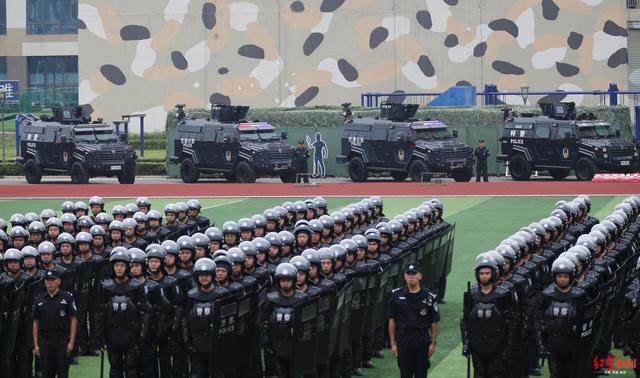 6月30日上午,在四川成都市公安局战训基地内,成都公安组织开展以“践行新使命、忠诚保大庆”为主题的实战演练暨誓师大会,成都市全市公安机关特巡警1200余名警力参加了此次综合演练。