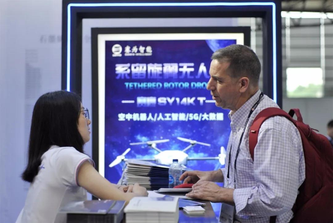 深圳市赛为智能股份有限公司携新研发的工业级无人机——赛鹰SY14KT系留旋翼无人机亮相大会,吸引移动、联通、电信、软银等国内外运营商,以及华为、中兴、高通等知名企业的关注。