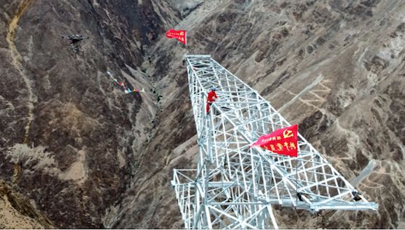 500千伏乌里托输电线路高空走线,图片来源新华社