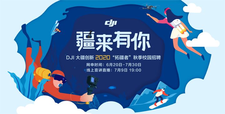 7月9日19:00,将全球首播2020秋季校园招聘线上宣讲会,届时将有部门大咖及萌新进行公司研发实力起底、部门职责介绍、工作体验分享,直播期间更有 DJI 大疆无人机和周边产品送出,敬请期待。