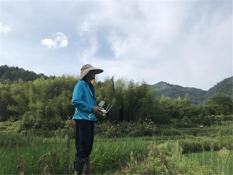 眼下是制种水稻病虫害的高发期。作为遂昌县无人机植保资历最老的“飞手”,如今59岁的张江旭在2015年就取得了农业植保无人机飞行技能合格证,有4台植保无人机。这段时间以来,由于业务繁忙,来自遂昌县以外的订单只能先放一放,因为当地20个乡镇(街道)的稻苗虫害治理,都在请他帮忙。
