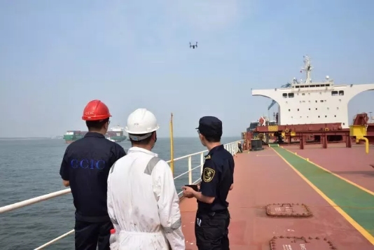 天津海关所属天津南疆海关在探索新的称重方式中,不仅提升了效率,而且应用了先进的无人机技术,在空中对整个称重过程进行全程视频记录,可以有效还原工作现场,一旦发生货物短重情况可为国内企业索赔提供有力支撑,对船方也有一定的约束作用。同时,应用无人机之后单次称重成本减少至780元人民币,原本需40分钟左右的观测时间减少至20分钟。