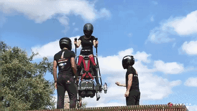 之后,这位发明企业家又再接再厉,发明了喷气动力版飞行滑板(Flyboard Air)据报道,与喷水动力版相比,喷气动力版飞行滑板改用5台烧航空煤煤油的迷你模型涡喷发动机,取消了拖在身后的长长水管和摩托艇,飞行自由度更高,能完成更复杂的飞行动作。