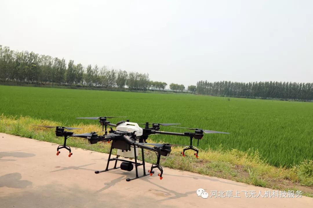随着植保无人机缓缓起飞,农药经过微米级的雾化处理后,在水稻2米上空均匀喷洒,并利用飞机螺旋桨产生的气流覆盖到整株水稻上。无人机飞抵的地方,受下旋气流的影响,水稻的叶子轻微翻动,保证了整株水稻都能够均匀受药。