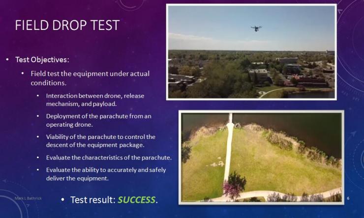 大疆无人机载荷定点投放测试,显示成功。图自美国内政部测试报告