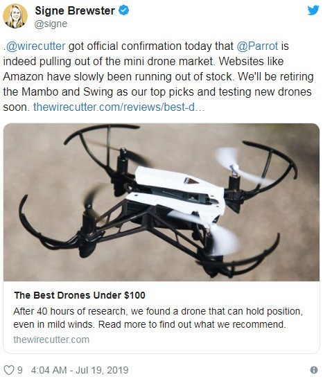 Parrot作为最后一个梯队退役的选手,旗下Mambo 和 Bebop产品线已经在逐渐清理库存,想必是今后如果再想看到Parrot无人机应该不太可能了。