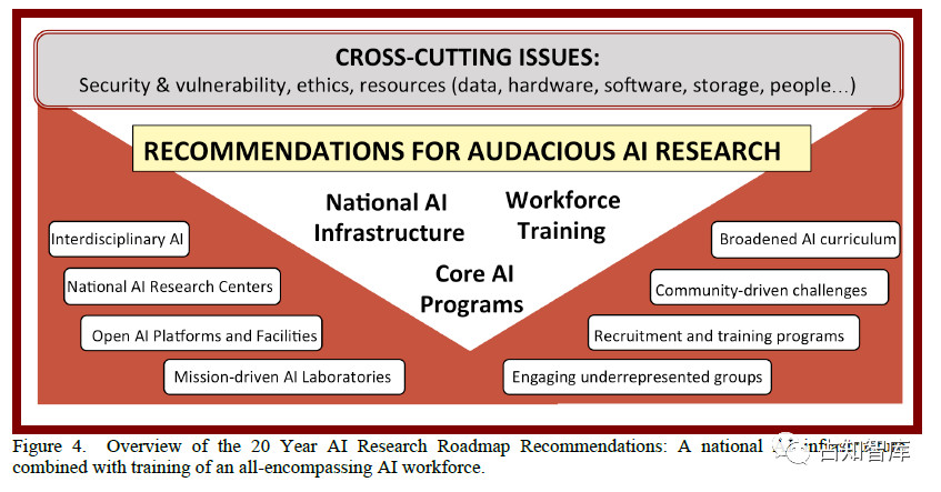 更严峻的是,美国很多人工智能博士毕业生在国外找到了有吸引力的工作;此外,许多人工智能教师已经转向工业。虽然这为理论和实践的有效交叉提供了新的机会,但也影响了下一代人工智能实践者的培训。要克服这些挑战,需要对人工智能研究进行彻底改革,创建一个全面的国家人工智能基础设施,并大力开展人工智能人员培训。