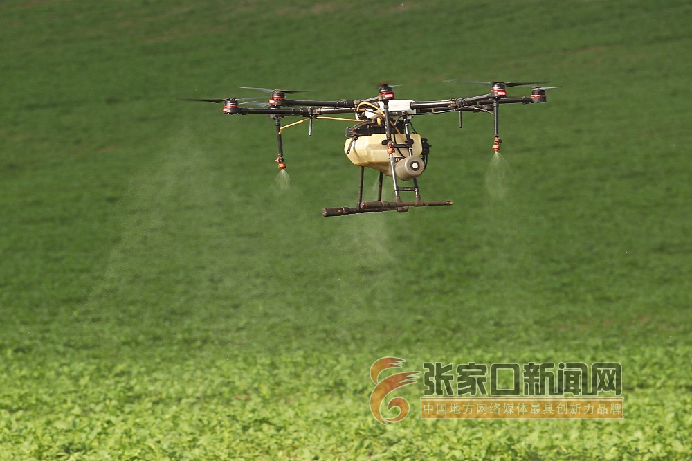 盛夏的塞北管理区,植保无人机在现代化农业种植基地进行马铃薯 、油菜籽等防治病虫害的农作物植保作业,促进稳产增收。