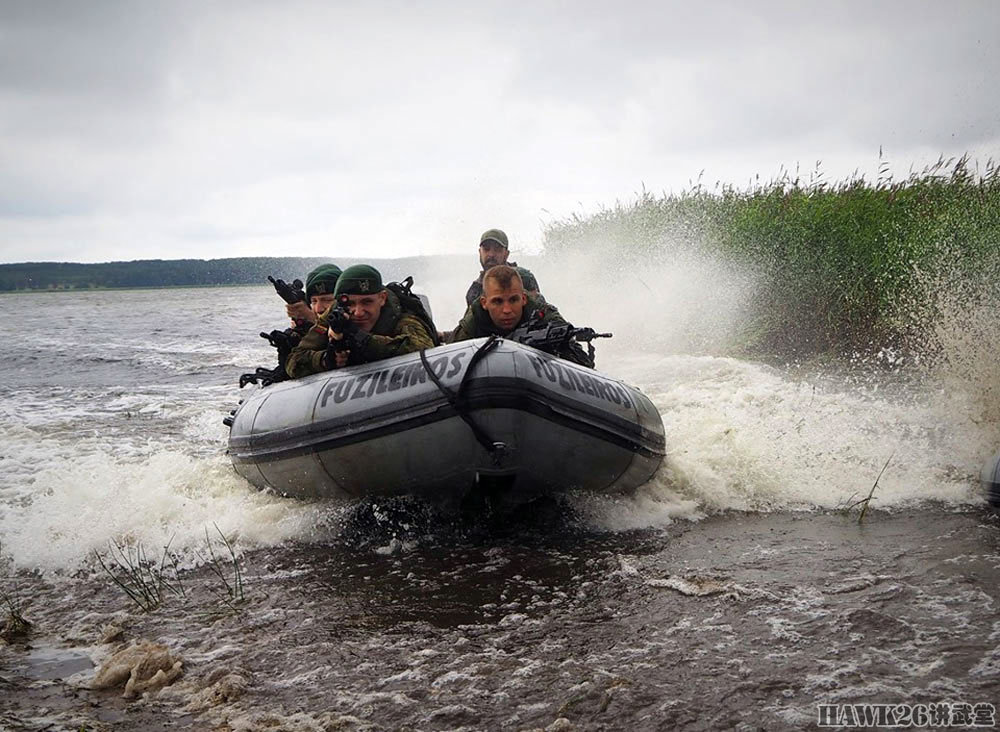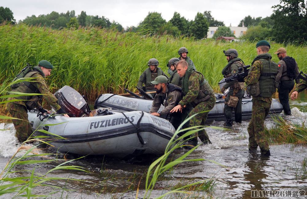 立陶宛士兵搭乘葡萄牙海军陆战队的橡皮艇登陆。