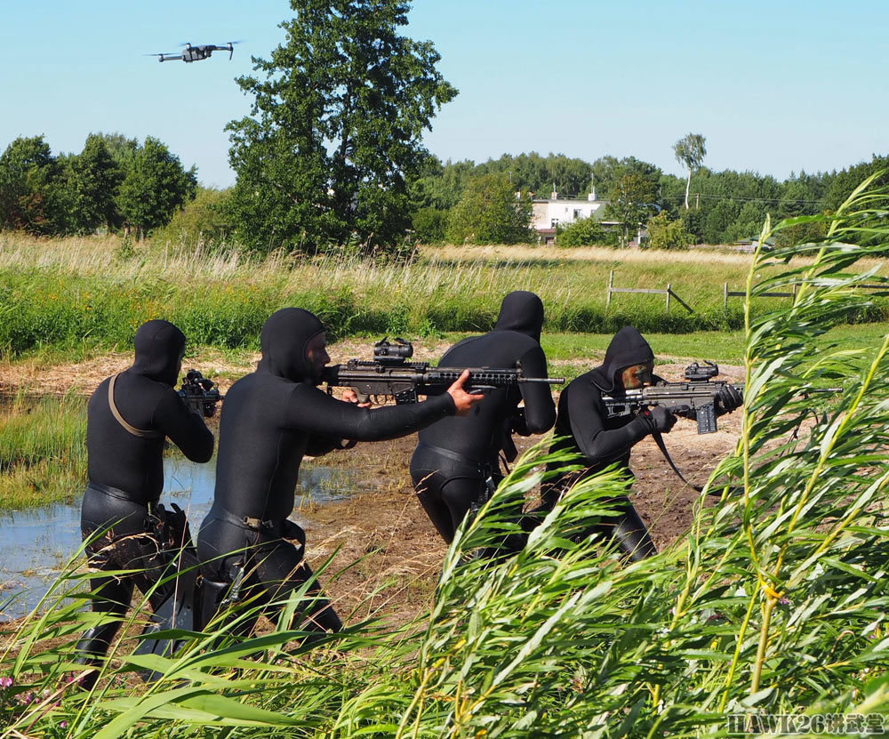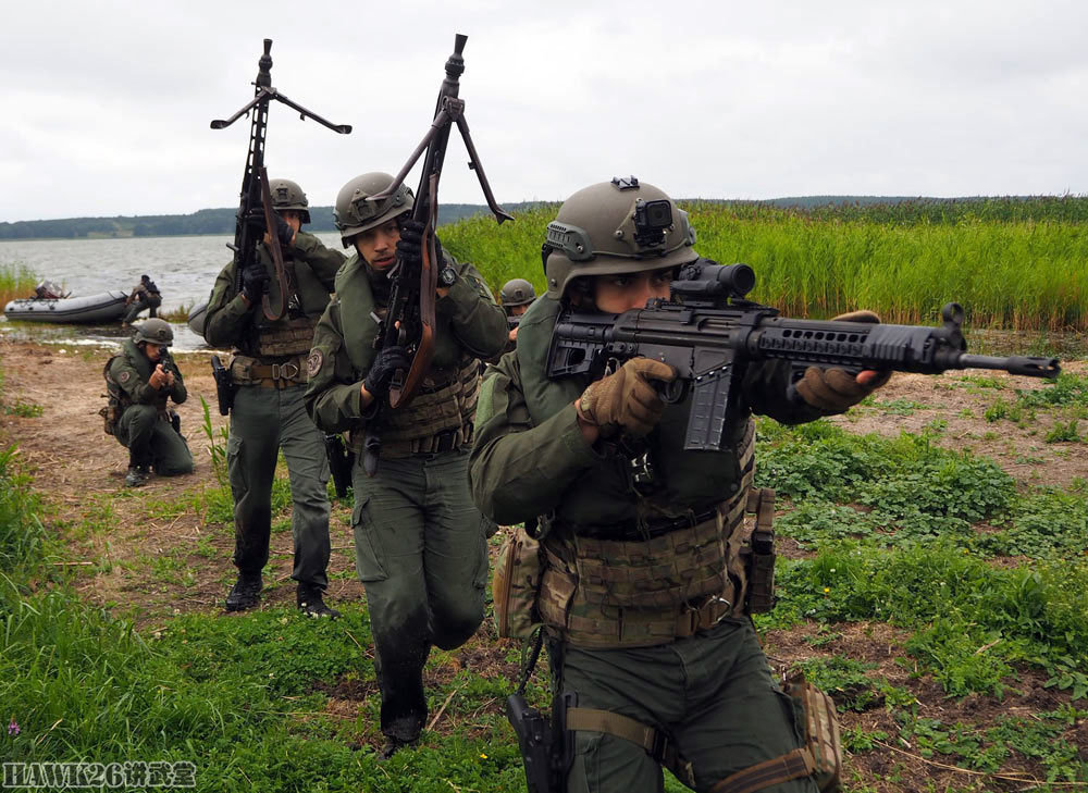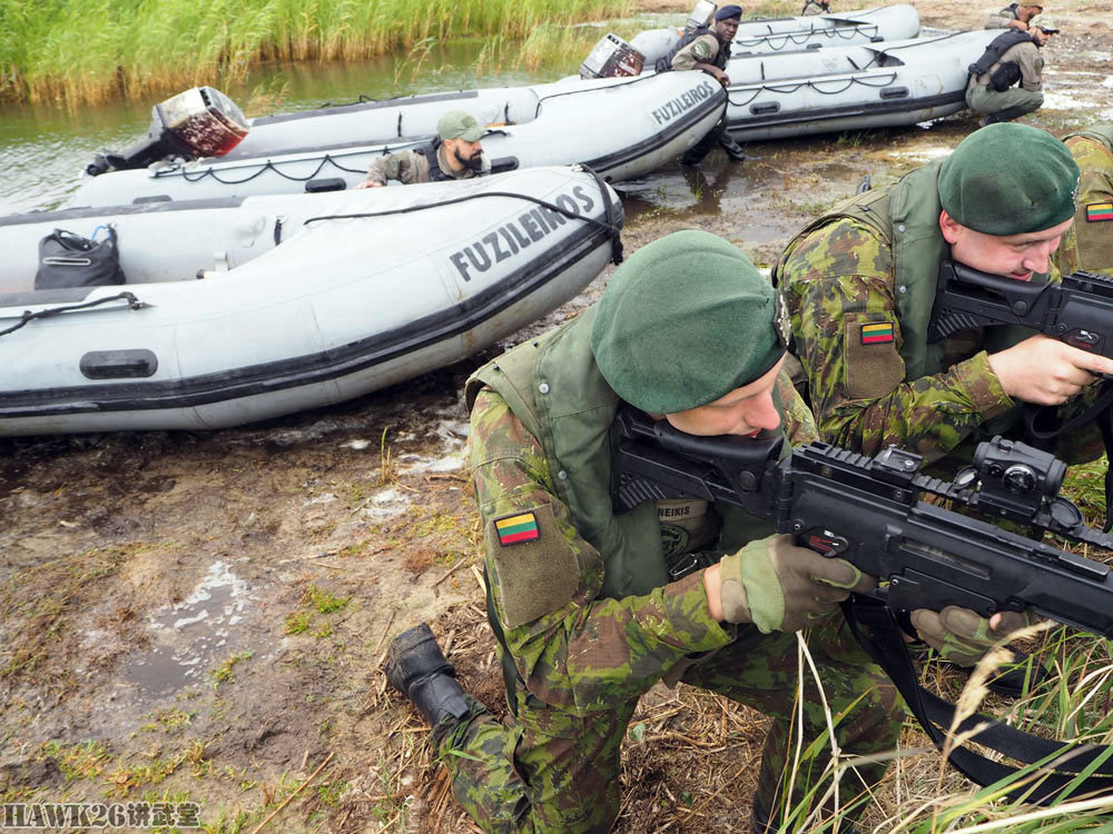 立陶宛士兵则使用G36步枪,口径为5.56×45mm,与G3一样,同为德国黑克勒-科赫公司的产品。