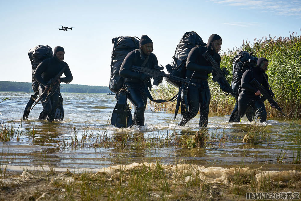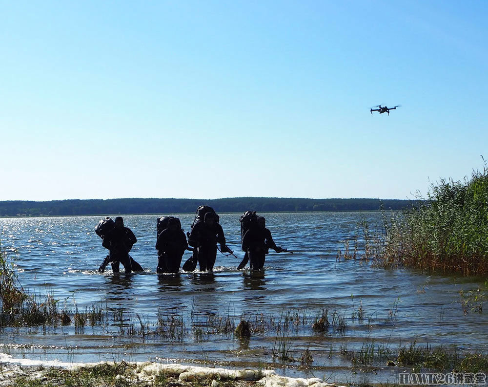在大疆无人机的伴随下,蛙人部队开始登陆。