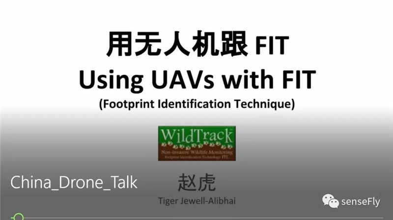 Zoe Jewell(佐伊· 杰威尔)教授创造了的FIT(Footprints Identification Technology,足迹脚印识别技术)技术,利用了senseFly无人机优势,能够对动物的脚印进行分析、追踪和比较,然后就可以得到一定区域里有关野生动物的种群、数量、性别等信息,为动物保护方面的决策制定打下基础。