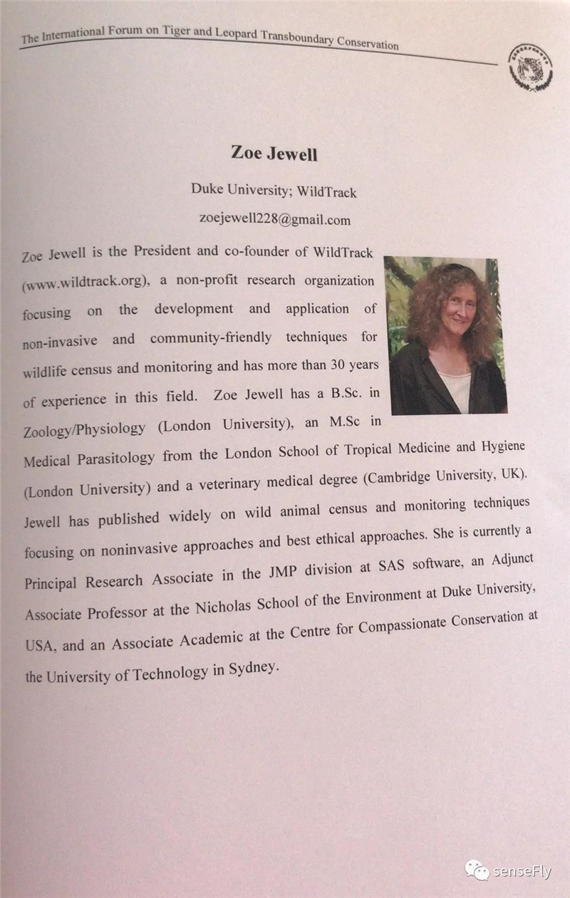 会上,近二十多个国家的领导和专家学者对虎豹保护形势、猫科动物种群检测技术与国际标准的制定、猫科动物种群和栖息地恢复技术的研究、人兽冲突解决技术的研究、猫科动物保护地景观资源配置技术的研究、猫科动物行为学的研究等问题进行多场专题报告。senseFly 无人机应用案例成功亮相并引起与会专家和学者的广泛关注。