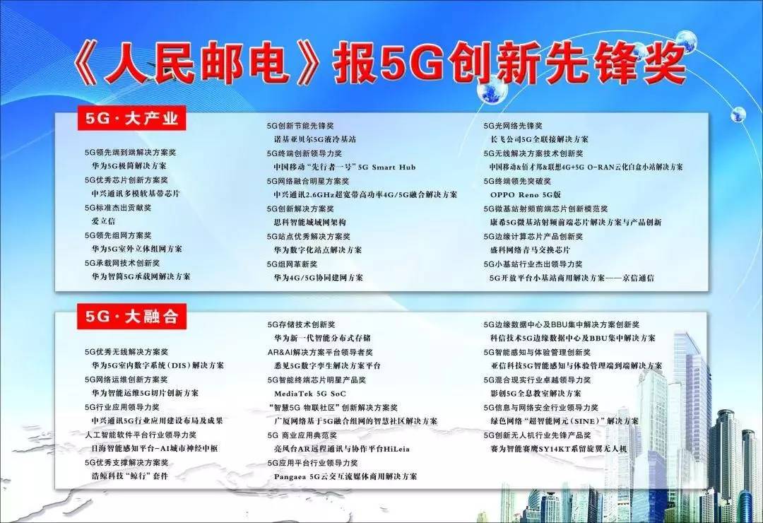 据了解,本次评选充分反映了当下5G作为通信行业的最大热点和建设方向,已经吸引了全产业上下游的集体关注和创新热情。本次评选涵盖“5G·大产业”“5G·大融合”两大板块,经初评、澄清材料和总评三个阶段,最终确定了33个奖项的获奖名单。《人民邮电》报还特别推出5G创新先锋奖获奖方案展示,详细介绍获奖的5G技术创新成果。