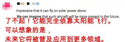 " 了不起!它能完全依靠太阳能飞行。可以想象的是,未来它将被普及应用到更多领域。"