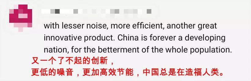 " 又一个了不起的创新,更低的噪音,更加高效节能,中国总是在造福人类。"