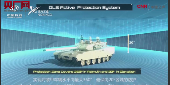 在加装主动防御系统后,VT5就能把就能实现水平向360度、俯仰20度区域防护。