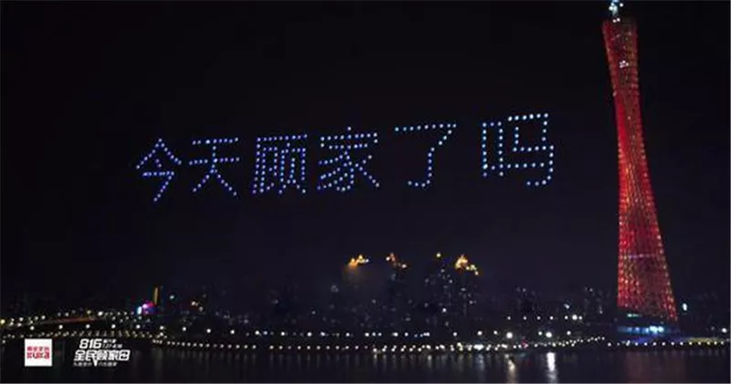 10、无人机亮相广州塔,问候广州人“今天你顾家了吗”