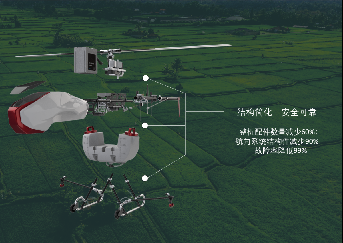 梅总从直升机的特点角度,向与会的嘉宾阐述了直升机在植保飞防领域的诸多优势:无距科技的X50植保无人机采用模块化设计,整机配件数量减少60%,定距尾桨的设计使航向系统结构件数量减少90%,由于直升机的故障大多出现在航向控制上,这样的设计理论上可将故障率减少99%。X50采用28500mAh的大容量智能电池,最大起飞重量50kg,载荷比达0.5。凭借安全、可靠且简化的结构、稳定的纯电动力以及25L标准的大尺寸药箱为农户带来了一款强效果、高效率和高收益的产品;可折叠的尾梁设计,方便转场,单旋翼带来的优秀风场,使药液沉降效果优异;针对农业作业的特别优化也致使X50成为目前市面上植保无人机中的佼佼者。