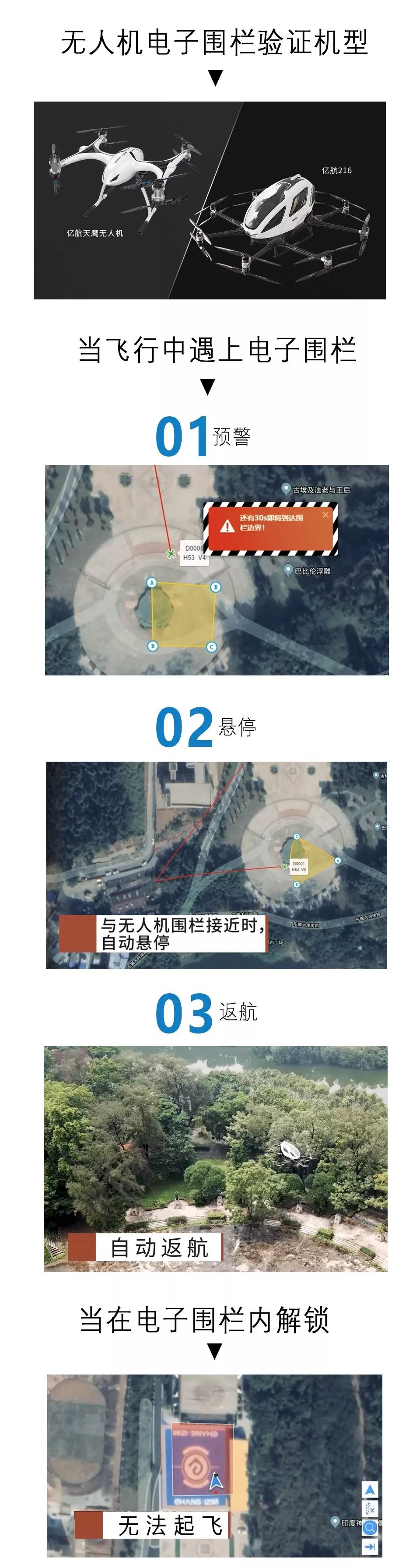 “目前,大型城市正在逐步向智慧城市转型,业内将其中两大主要应用——交通、物流称为‘城市空中交通(Urban Air Mobility,UAM)’,这一全新的产业被摩根士丹利预测将在2040年达到1.5万亿美元的市场规模。不远的未来,城市上空将形成一个由数千台、甚至数万台智能飞行器组成的空中网络。”亿航智能副总裁张妍表示:“电子围栏是通过软硬件产品有效结合,在无人机运行过程中降低风险的有效技术保障措施,让飞行更加安全、可靠。亿航也将与民航局、航科院紧密合作,积极配合监管,为智能飞行器创新应用的落地不断提速,引领电子围栏技术发展。”