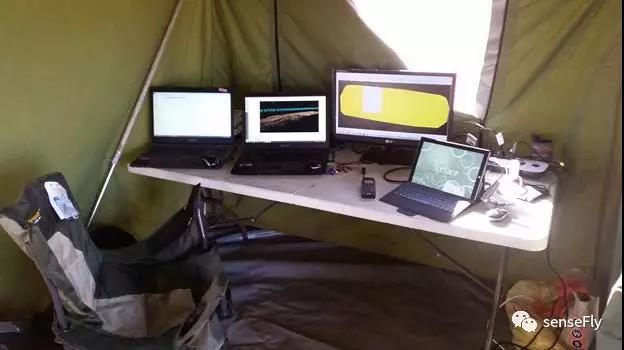 每次飞行完成后,350-400张图像通常需要一到两个小时进行处理,其中50%的工作是在团队营地的电脑完成的(下图)。使用的两台笔记本电脑每天能够处理大约10个2公里的走廊路段。