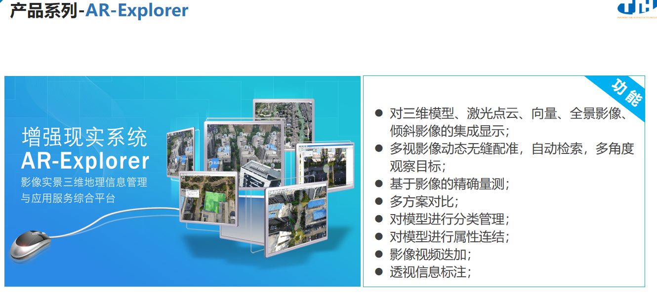 AR-Explorer系统是一套影像实景三维地理信息管理与应用服务综合平台,实现了影像与二、三维数据的无缝配准,多种数据的信息叠加。广泛应用于测绘、旅游、文物保护、国土等行业,提升信息完备性、视觉效果、量测效果和多期数据的可回溯能力。