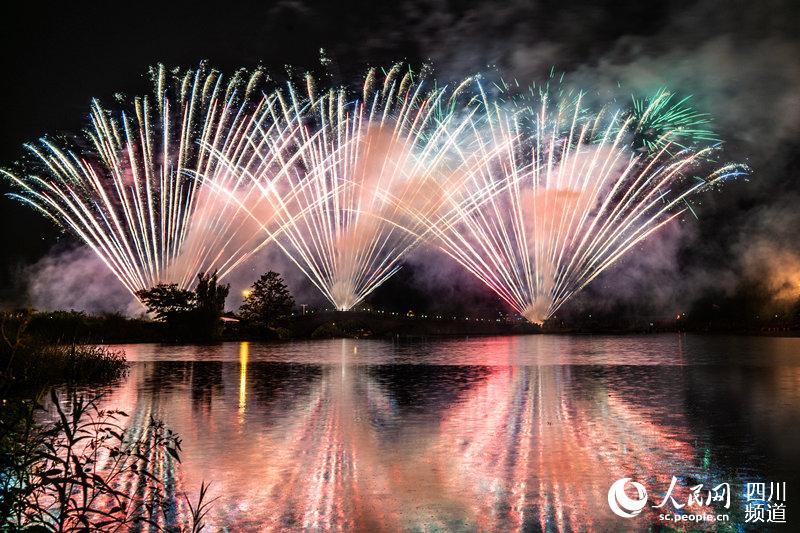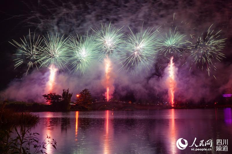 人民网成都9月1日电 (王军)8月30日20:30,成都青白江凤凰湖畔,一场豪华烟花秀和科技感十足的无人机精彩表演。